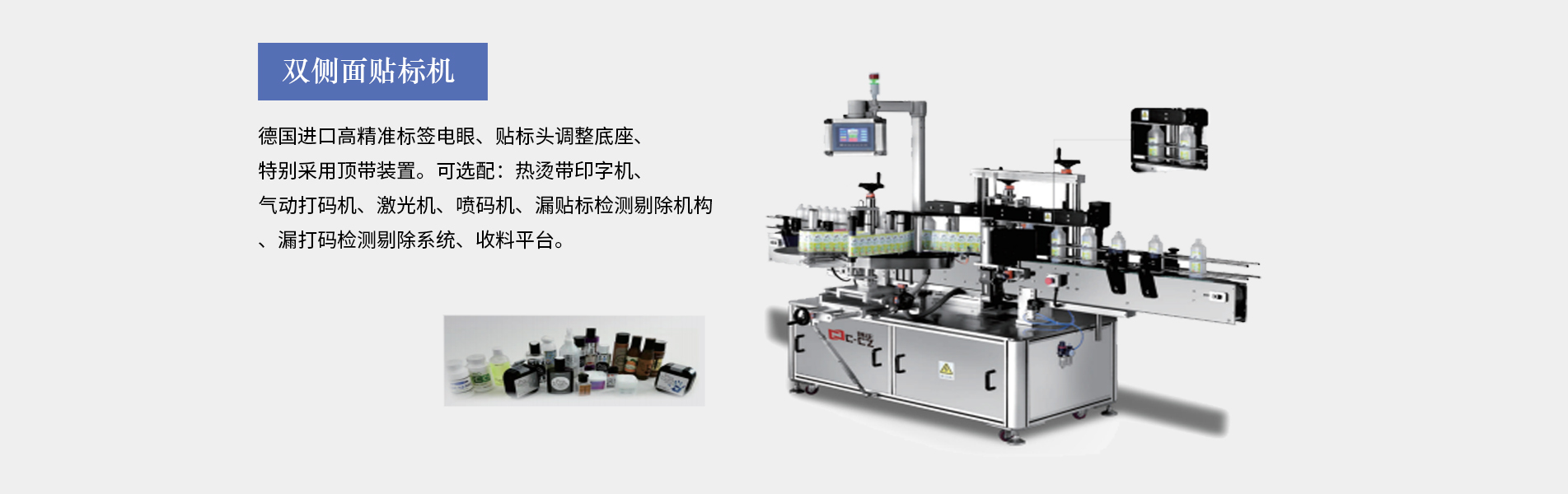 本公司生產(chǎn)的口服液貼標(biāo)機適合細(xì)長形圓柱體瓶圓周表面的不干膠標(biāo)簽自動貼標(biāo),口服液瓶等,采用彩色人機界面,離合器設(shè)計,使標(biāo)簽張緊力更加穩(wěn)定,便于提高貼標(biāo)精度3、西門子PLC控制,德國、日本光眼,高精度步進(jìn),貼標(biāo)速度可達(dá)30米/分鐘,可加裝色帶打碼機、或者熱轉(zhuǎn)印機。口服液貼標(biāo)機多為圓瓶貼標(biāo)機適用于瓶身長,直徑的產(chǎn)品(玻璃塑料都可以,材質(zhì)不限),同時可加工粉針劑瓶、采血管、水針劑瓶、眼藥水瓶、圓管等,專門針對...